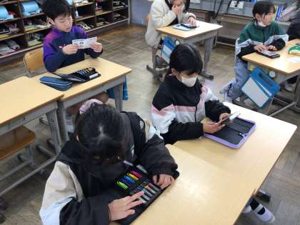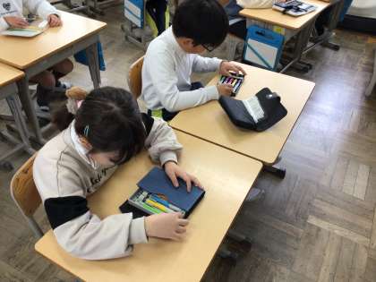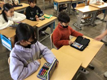 1/14 4年図工 公開日 2026/01/14 更新日 2026/01/14 各学年から 4年図工では、彫って刷って見つけての作品づくりに入ります。彫ってできる線の特徴を生かし、彫り方を工夫して表現しようという版画の作品になります。版画をやる前に、彫刻刀の種類とどんな線になるかといった説明を聞き、彫刻刀の刃の形を確認しました。
