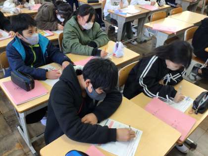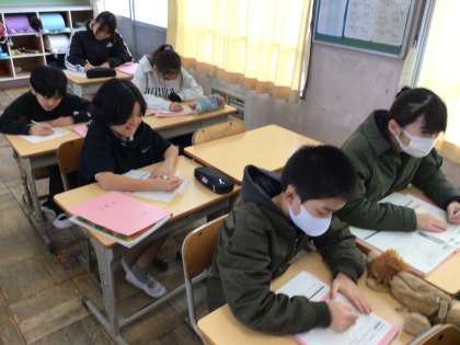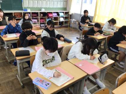 1/14 5年家庭科 公開日 2026/01/14 更新日 2026/01/14 各学年から 5年家庭科では、物を生かして住みやすくの単元を学んでいます。「3Rについて自分に何ができるかを考えよう」というめあてで学習を進めていました。3Rのことばの意味を確認した上で、ワークシートに具体的にどんなことができるのかを考え、書き込んでいました。