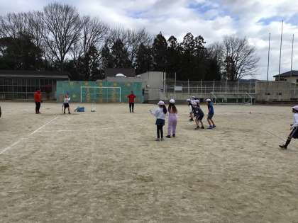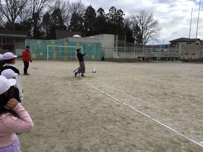 1/14 4年体育2 公開日 2026/01/14 更新日 2026/01/14 各学年から 今日の投げ方教室の様子です。選手と一緒にTボールゲームを行いました。夢中になってボールを投げたり、走ったり、楽しく活動をしていました。