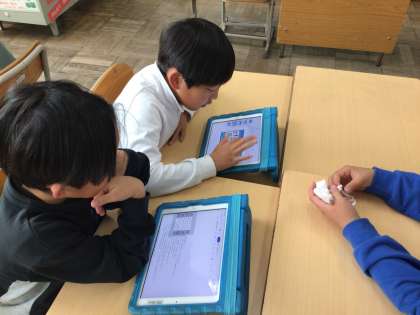 1/14 3年生総合的な学習 公開日 2026/01/14 更新日 2026/01/14 各学年から 点字や認知症などについて調べたことをタブレットを使ってまとめています。まとめたパワーポイントができた人は、発表原稿を考えました。発表原稿もタブレットを使って作成することで、修正を加えやすくしています。