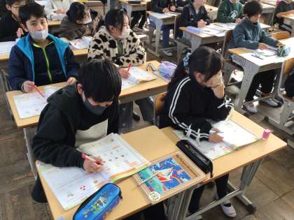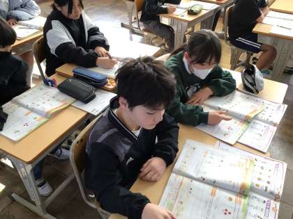 1/15 5年外国語 公開日 2026/01/15 更新日 2026/01/15 各学年から 5年外国語では、「店員さんと英語でやり取りをしよう」というめあてで学習を進めていました。リスニングでいくらなのかを聞き取り、問題に答えていました。