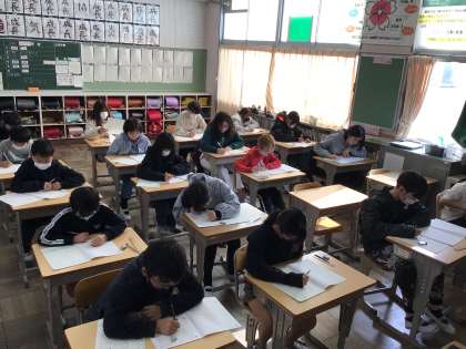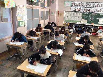 1/15 5年学力検査 公開日 2026/01/15 更新日 2026/01/15 各学年から 今日の2限は全校で学力検査(算数)を実施しています。集中して問題を読み、解いていました。尚、5年生のみ5教科で実施しているので、太陽の時間を挟んで3限に理科を実施します。