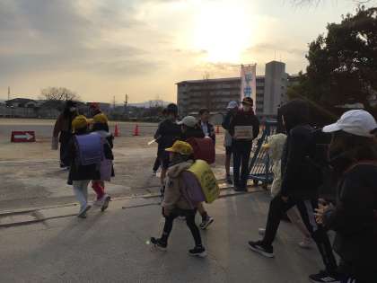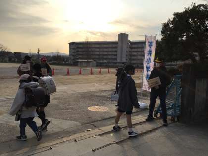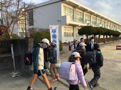 今日も元気よく通学団で登校してきました。校門で気持ちのよいあいさつを交わしてから、教室に向かいました。