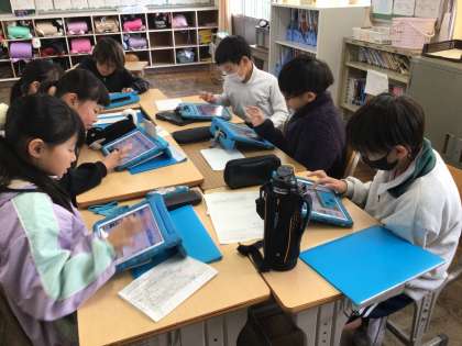 1/16 4年生総合的な学習 公開日 2026/01/16 更新日 2026/01/16 各学年から これまで取り組んできたことを学習用タブレットを使ってまとめています。岩本川の生き物がどんなところをすみかとしているか調べたことや、そのすみかをつくるためにどんな岩本川改修工事をしたかなどを写真を取り入れながらスライドにしたり、友達が作成したスライドにアドバイスをしたりしました。