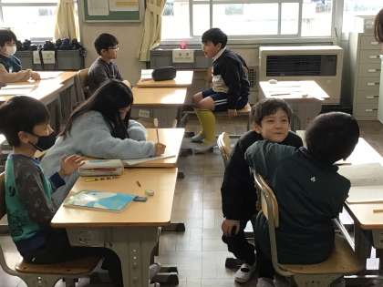 1/16 2年生算数 公開日 2026/01/16 更新日 2026/01/16 各学年から 2年生算数では「どんな計算になるのかな」の学習をしています。文章を読んでどんな式になるかをペアで考えて発表しました。