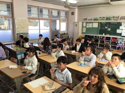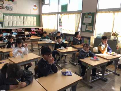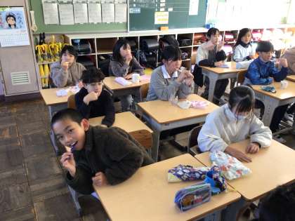 1/16 給食が終わると… 公開日 2026/01/16 更新日 2026/01/16 各学年から 給食の片付けが終わると歯みがきタイムです。明るくリズミカルな曲に合わせて歯みがきをしました。土曜日や日曜日もしっかり歯みがきをしてくださいね。