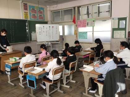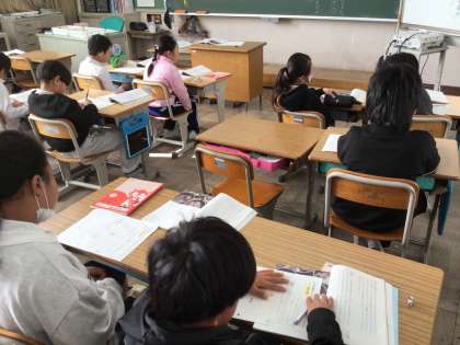 1/19 3年生国語1 公開日 2026/01/19 更新日 2026/01/19 各学年から 3年生国語では、説明文「カミツキガメは悪者か」の学習をしています。カミツキガメの生態について考え、プリントにまとめました。