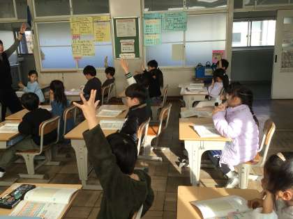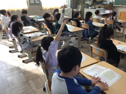 1/20 1年生算数 公開日 2026/01/20 更新日 2026/01/20 各学年から 1年生算数では、「100までの数」について学習しています。今日は、教科書の絵の葉っぱの数を数えました。どのように数えると数えやすいか考え、発表しました。