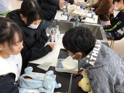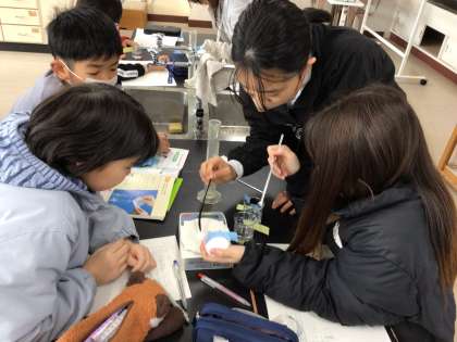 5年理科では、ものの溶け方の単元を学んでいます。食塩、ミョウバンをそれぞれ5gずつ溶かしていき、溶けたら○、溶けなかったら✖️を記録していました。