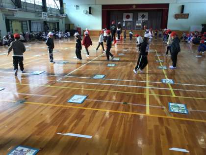 1/20 やまびこジャンボかるた大会2 公開日 2026/01/20 更新日 2026/01/20 特色ある学校づくり推進事業 予想したかるたの近くにいる子、ねらったかるたのそばで待つ子、どのかるたでも取りに行けるように歩き回っている子、かるたを獲得するために思い思いの方法で取り組んでいます。