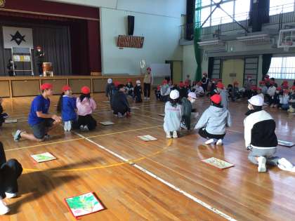 1/20 やまびこジャンボかるた大会3 公開日 2026/01/20 更新日 2026/01/20 特色ある学校づくり推進事業 かるたがとれるたびに歓声が上がり、体育館は熱気に包まれました。 今日のジャンボかるた大会の結果と先日行われたプチかるた大会の結果を合計し、今年は白組の勝利となりました。