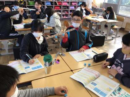 1/21 6年理科 公開日 2026/01/21 更新日 2026/01/21 各学年から 6年理科では、てこのはたらきの単元を学んでいます。「実験用てこを使ってうでのかたむきを調べよう」というめあてで学習を進めていました。理科ノートを活用しながら、実験の予想をした上で、グループで実験をしていました。