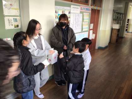 1/22 お年玉募金 公開日 2026/01/22 更新日 2026/01/22 各学年から 8時15分から南舎1階廊下でJRC委員会の子どもたちがお年玉募金を呼びかけていました。教室にランドセルを置いてすぐお年玉募金を届けにきた子たちがいました。明日も募金活動を行います。