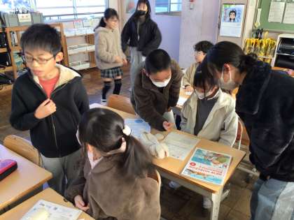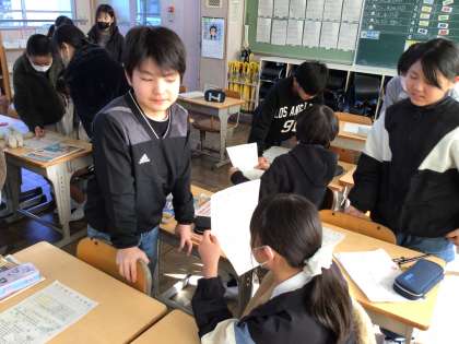 1/22 5年外国語 公開日 2026/01/22 更新日 2026/01/22 各学年から 5年外国語では、ALTの先生と一緒にunit6を学んでいます。「ていねいに注文したり、値段をたずねたりしよう」をめあてに学習を進めていました。ペアもしくはグループで、レストランでの注文の場面の会話をしていました。
