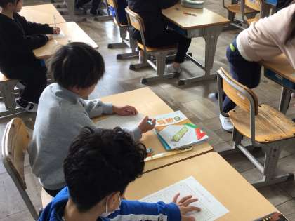2年生算数では「かけ算」の練習で「百マス計算」を行っています。今日は、いつもと違う「かける数とかけられる数」で計算をしました。