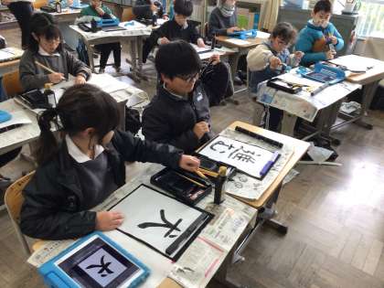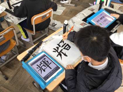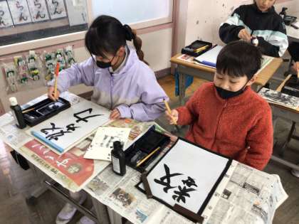1/23 4年書写 公開日 2026/01/23 更新日 2026/01/23 各学年から 4年書写では、「今年一年の漢字を書こう」というめあてで学習を進めていました。どんな年にしたいか、どんなことをがんばりたいかを踏まえて文字を選び、書き上げていました。