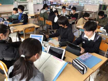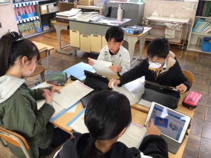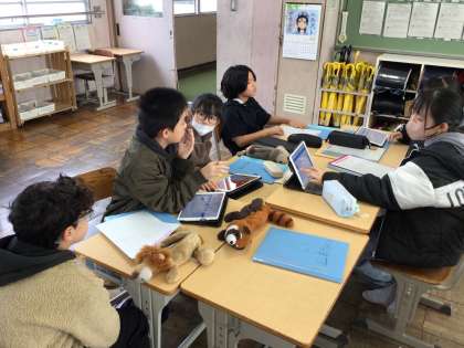 1/23 5年総合 公開日 2026/01/23 更新日 2026/01/23 各学年から 5年総合では、自分と世界 〜ちがいを知ろう ちがいを愛そう〜というテーマで学習を進めています。これまでにまとめたことを来週の授業参観(学習発表)の際に発表する準備していました。