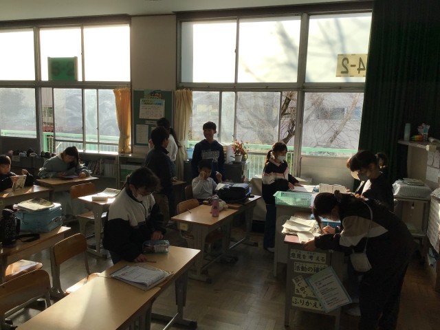 1/28 朝のひととき2 公開日 2026/01/28 更新日 2026/01/28 各学年から あたたかい教室で時間を見ながら朝の支度を進めていました。友達や先生と会話をしながらも、やるべきことを時間内にできるようになっていますね。