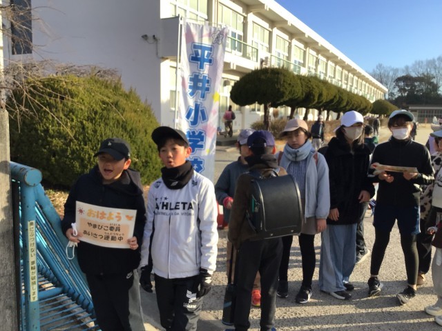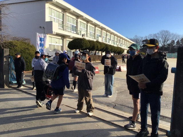 マイナス1度と冷え込んだ朝となりましたが、通学団で元気よく登校してきました。校門でさわやかなあいさつの声が飛び交っていました。