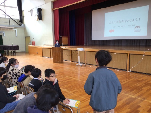 今日の学校保健委員会の様子です。スクールカウンセラーの先生の話を聞いた後振り返りを記入し、発表をしました。友達の意見を聞いて頷いたり、声を出して反応したりするなど、聴く姿勢がよかったです。