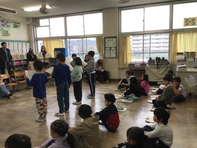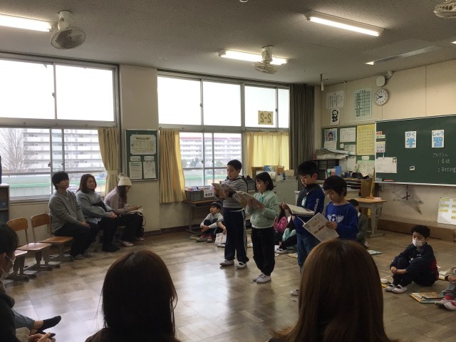 2年生の生活科で学習発表会を行い、保護者の皆様にも見ていただきました。音読の発表をしたり、動画で大縄跳びの発表をしたり、九九の計算をしたり、できるようになったことをたくさん発表しました。