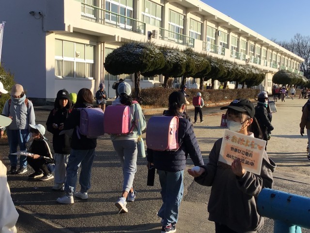 1/30 朝のひととき1 公開日 2026/01/30 更新日 2026/01/30 各学年から 昨晩の雪で校門横の二宮金次郎にも雪が残っていました。通学団で元気よく登校してきました。今日も校門で気持ちのいいあいさつが交わされていました。