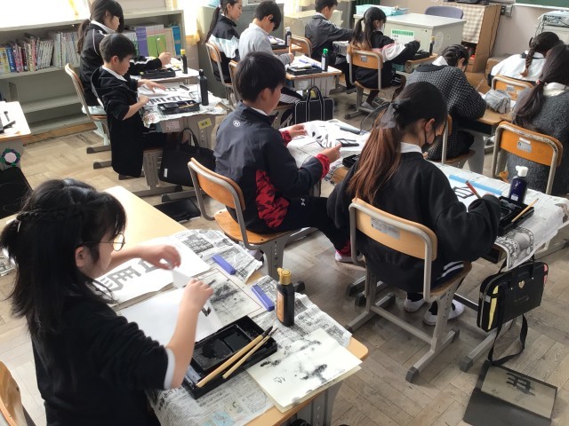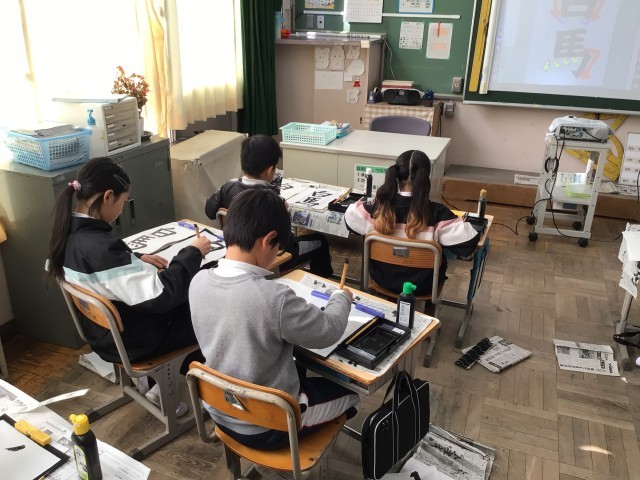 1/30 4年書写 公開日 2026/01/30 更新日 2026/01/30 各学年から 4年書写では、「大きさを意識して書こう」というめあてで学習を進めていました。「白馬」という字を書いていますが、はらい、はねに加えて字のバランスが難しいので、苦労して書いていました。