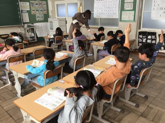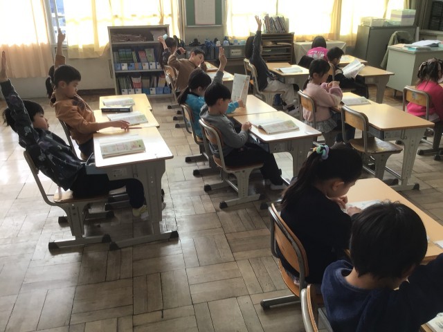 1年生算数では、時計を見て、「何時何分か」わかるように練習しました。丸い時計とデジタル時計を見て、同じ時刻を選びました。どんな時計でも時刻がわかるようにしていきます。