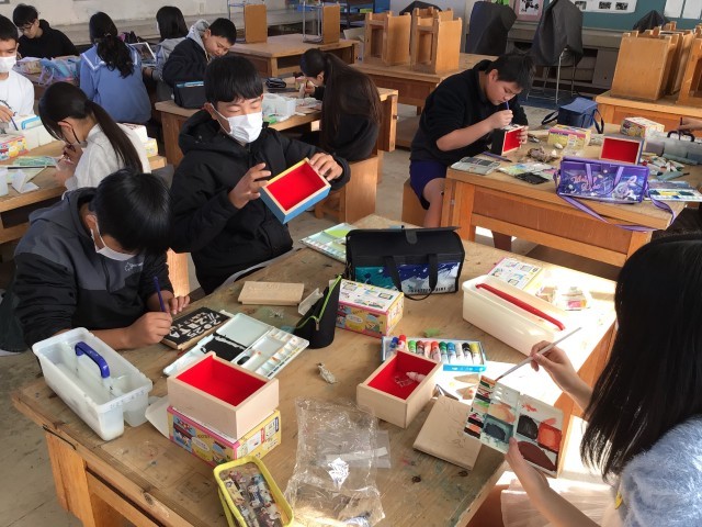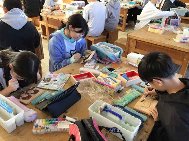 2/3 6年図工 公開日 2026/02/03 更新日 2026/02/03 各学年から 6年図工では、卒業制作を行っています。グランドボックスという教材で、「思い出に残る作品をつくろう」というめあてで学習を進めていました。彫りを進めている子や板に絵の具で着色している子など制作状況はさまざまですが、黙々と作品をつくっていました。完成が楽しみですね。