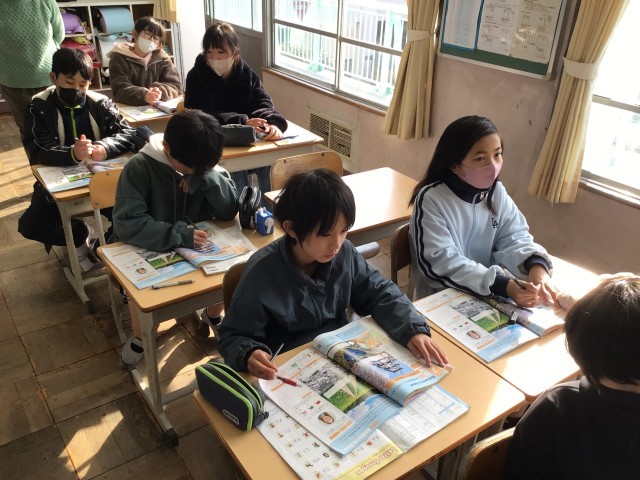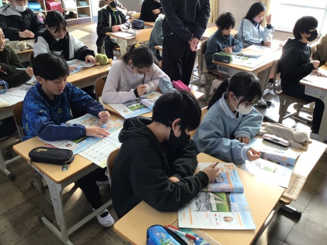 2/5 5年外国語 公開日 2026/02/05 更新日 2026/02/05 各学年から 5年外国語では、unit7 Welcome to Japan! を学んでいます。「どんなことを紹介しているか聞き取ろう」というめあてで学習を進めていました。教科書のイラストを見ながら集中して会話の聞き取りをしていました。