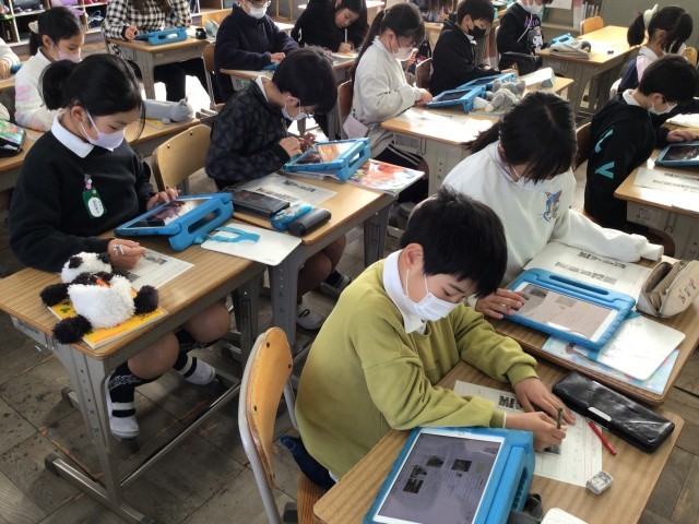 2/5 4年社会 公開日 2026/02/05 更新日 2026/02/05 各学年から 4年社会では、特色ある地域と人々のくらしの単元を学んでいます。「せとものはどのようにして作られているのだろうか」というめあてで学習を進めていました。予想をした後、学習用タブレットで調べたことをワークシートに記入していました。