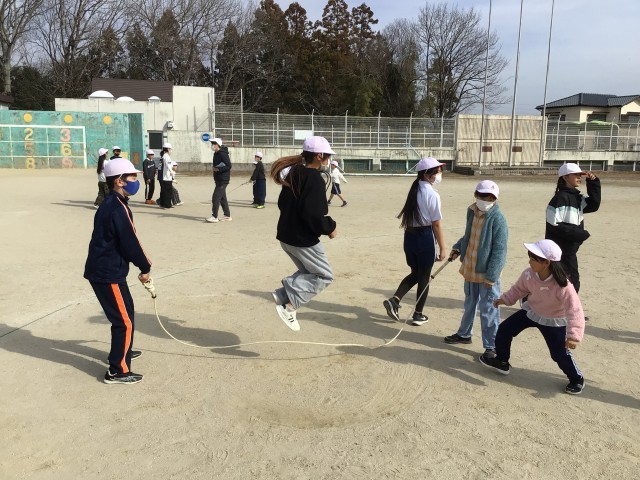 2/5 やまびこ遊び 公開日 2026/02/05 更新日 2026/02/05 特色ある学校づくり推進事業 今日の給食後はやまびこ遊び(大縄練習)です。やまびこ班ごとで大縄練習を行いました。高学年の子たちが上手に声をかけたり、カウントをしながら練習を進めていました。