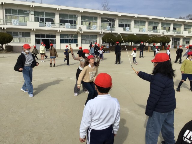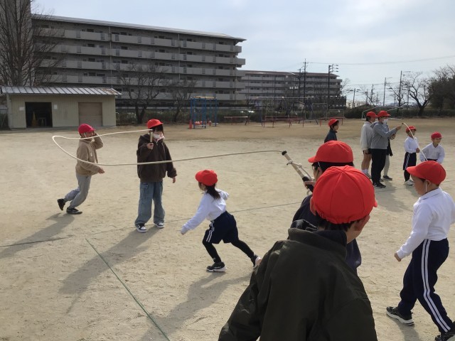 今日のやまびこ遊び(大縄練習)の様子です。リーダーの指示に従ってどのやまびこ班も一生懸命練習をしていました。来週の木曜日の2限にやまびこ大縄大会を予定しています。