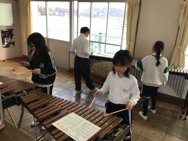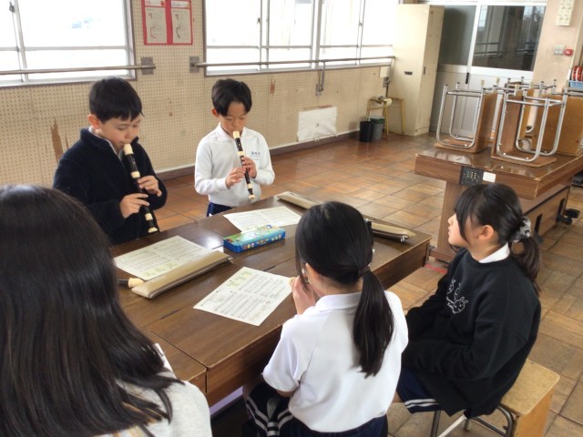 2/6 3年音楽 公開日 2026/02/06 更新日 2026/02/06 各学年から 3年音楽では、「ハッピーソング」を元気よく歌ったり、「帰り道」を歌詞をしゃべることを意識しながら歌いました。「たがいの音を聴き合って演奏しよう」というめあてで、「聖者の行進」「メリーさんのひつじ」を周りの音を聴きながら演奏しました。「パフ」はパートごとに分かれて、自分のパートの音取りをしました。