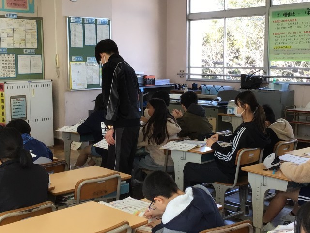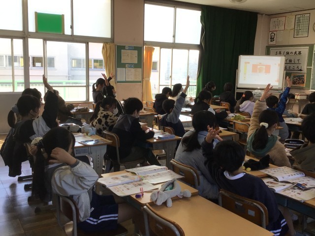 2/9 5年生外国語 公開日 2026/02/09 更新日 2026/02/09 各学年から 5年生外国語では「世界の料理や食文化」について考えました。英語の文章を聞きとり、どんな質問かを考え、ノートに答えを書きました。