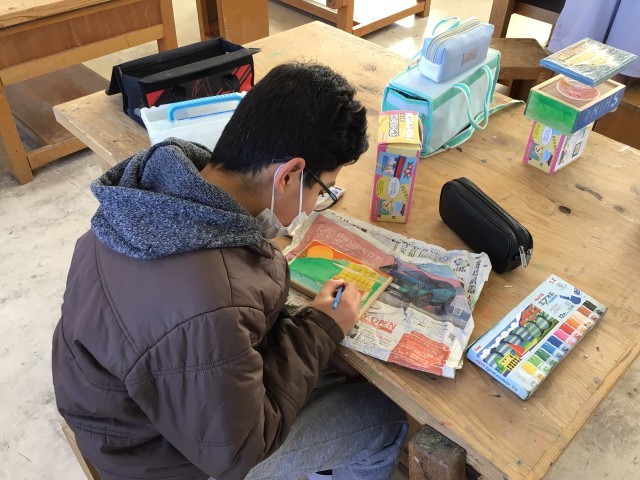 2/10 6年図工 公開日 2026/02/10 更新日 2026/02/10 各学年から 6年図工では、卒業制作 グランドボックス を作っています。「思い出に残る作品をつくろう」というめあてで進めていて、彫り終わった板の部分を丁寧に着色していました。完成が楽しみですね。