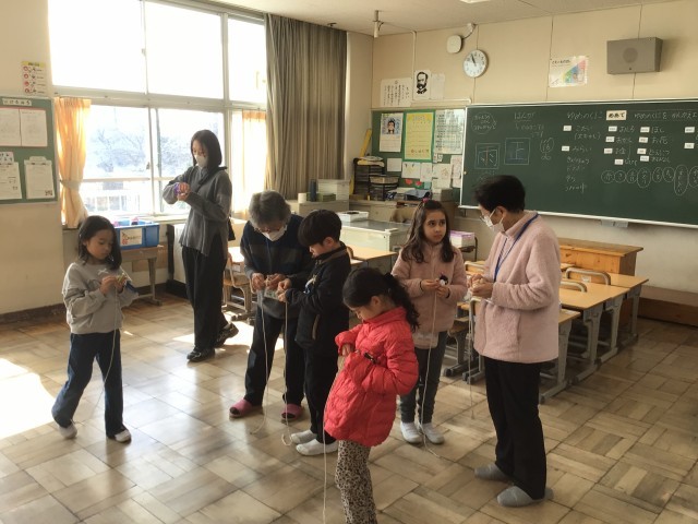 2/13 1年生昔遊び1 公開日 2026/02/13 更新日 2026/02/13 各学年から 1年生生活科では、「昔遊び」を行いました。こま回しや、けん玉などボランティアの方に教えていただきながら、楽しむ姿が見られました。1年2組は学級閉鎖のため、1年2組には、1組の子どもたちが来週以降、教えてくれることになっています。