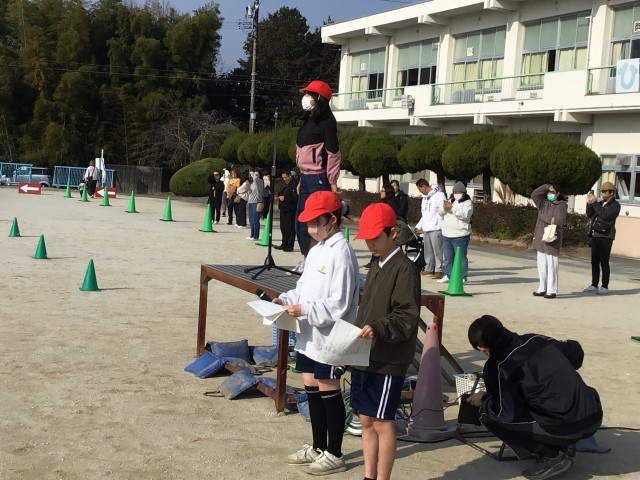 2限運動場で、やまびこ大縄大会を実施しました。運動委員会が中心となって会を進めていました。準備体操を兼ねて平井体操を全校で行いました。