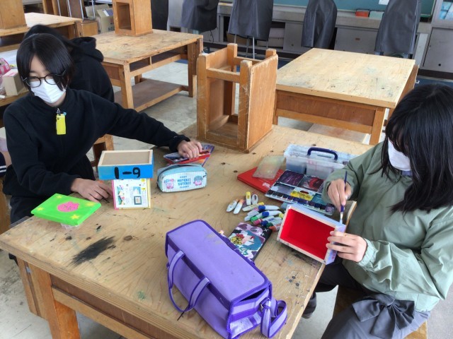 6年図工では、卒業制作のグランドボックスの仕上げを行っていました。平井小学校に通学するのも20数日。たくさんの思い出をつくって、いい形で卒業ができるようにしていきましょう。