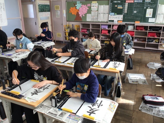 2/17 6年書写 公開日 2026/02/17 更新日 2026/02/17 各学年から 6年書写では、「友情」という文字を書いていました。お手本を見ながら、集中して書き上げていました。平井小学校で育んだ友情を大切にしていきましょう。