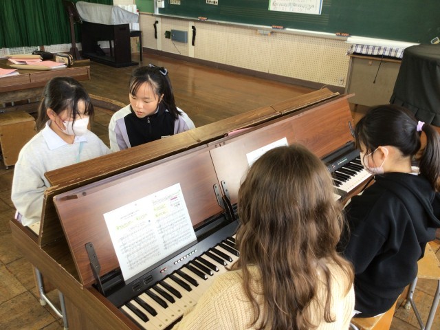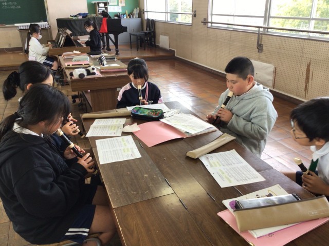 4年音楽では、「パレードホッホー」「赤いやねの家」「もみじ」を強弱記号に気をつけて歌いました。リコーダーでは、「エーデルワイス」の1番パートの音取りをしました。「ゆっくりテンポで合奏してみよう」というめあてで、「茶色の小びん」の器楽合奏も行いました。