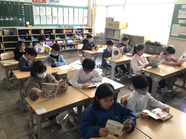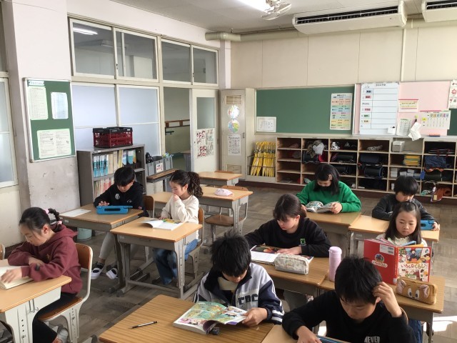 どの学級もチャイムで気持ちを切り替えて、静かに読書をしていました。落ち着いた雰囲気で一日がスタートできました。