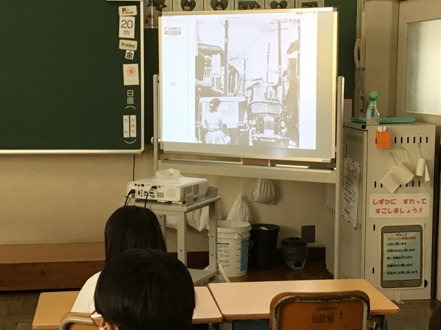 昔の豊田市の様子を写した写真を見た子どもたち。今とはまったく異なる様子に驚いていました。豊田市がどのようにして今のような街になったのか豊田市の移り変わりを学習していきます。