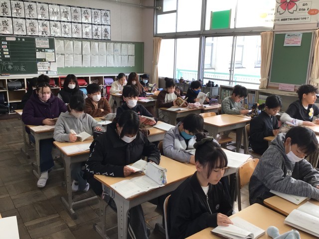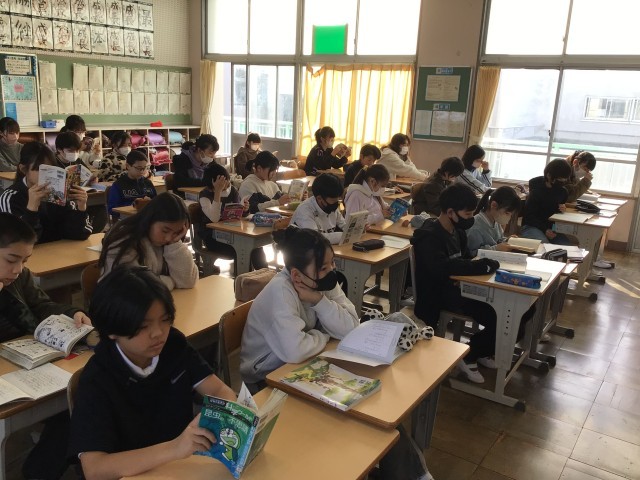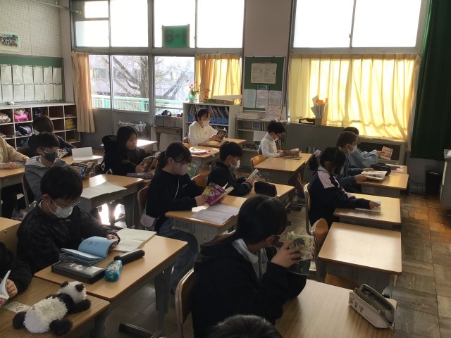 8時25分までに朝の支度を済ませ、チャイムがなると静かに読書が始まりました。いい姿勢で本を読むことができていますね。