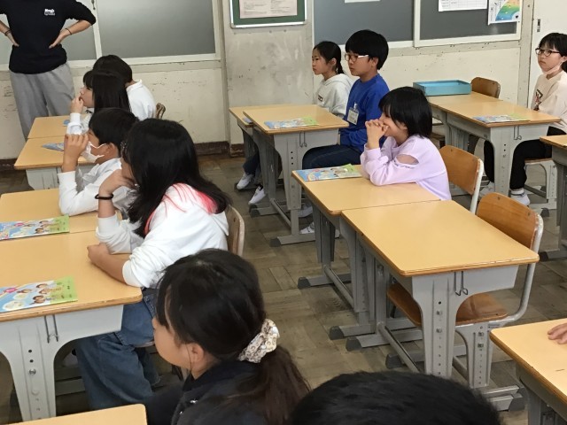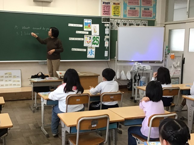 3年生外国語活動では、「あなたの好きな動物はなんですか」という質問に対して「私が好きな動物は〇〇です」と英語で答える練習をしました。ALTの先生の発音をよく聞き何回も発音しました。