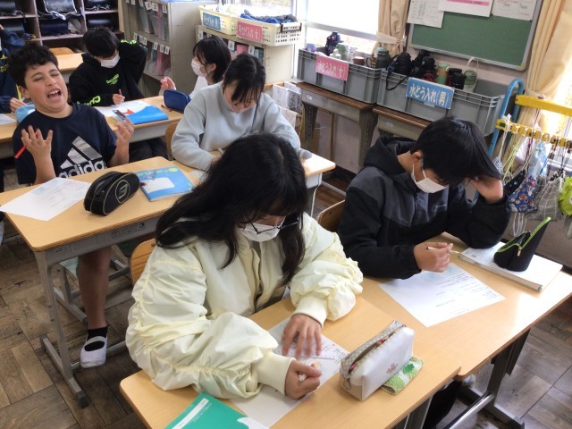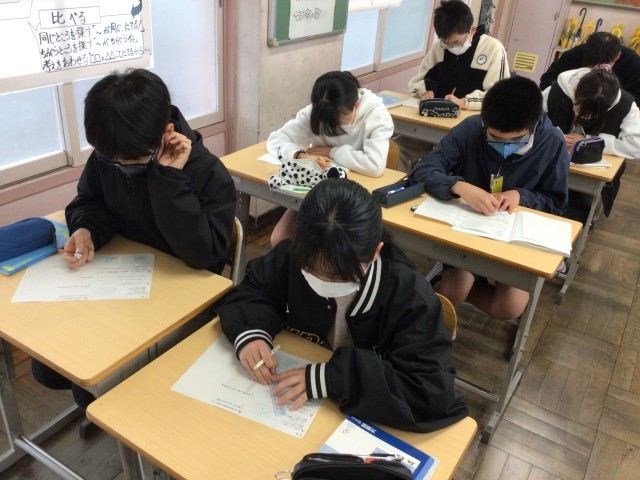 6年算数では、小学校で習ったことの総復習を進めています。今回は平面図形です。円の面積、周の長さの求め方、三角形や平行四辺形の面積の求め方を公式の復習だけでなく、実際に数値を使って計算をしていました。