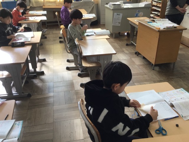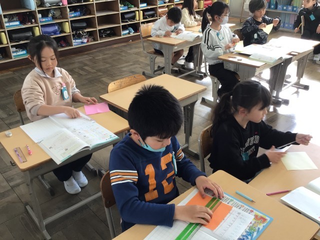 3/4 2年生算数 公開日 2026/03/04 更新日 2026/03/04 各学年から 2年生さんすうでは、「分数」の学習に入りました。今日は、「いろいろな形で半分の大きさをつくろう」というめあてで取り組みました。正方形、長方形、まるの折り紙をつかって半分の大きさを実際につくってみました。