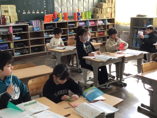 3/6 2年生算数2 公開日 2026/03/06 更新日 2026/03/06 各学年から 2年生算数「分数」では、「半分の半分」の大きさを考えました。色紙を4つに折るとよいことなど、考えて発表しました。
