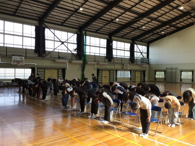 6年生は2限体育館で卒業式練習を行いました。式の流れに沿って、今週練習をしてきたことができているかを確認しました。真剣な表情が素晴らしかったです。本番に向けて、がんばっていきましょう。