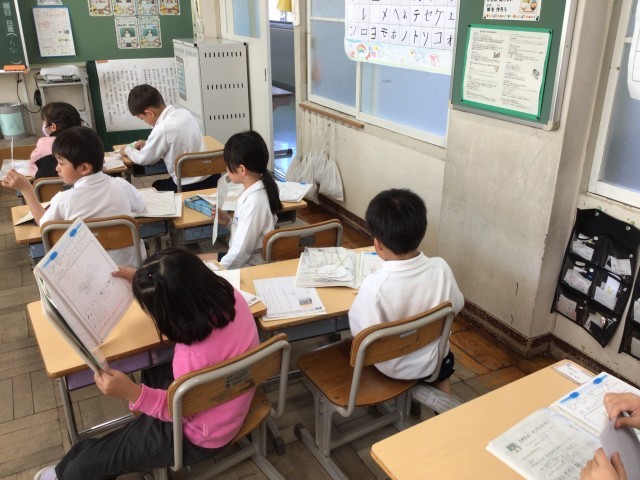 1年生生活科ではたくさんのことを学習してきました。今日は、生活科ノートに、自分が今までにかいたプリントをまとめ、振り返りをしました。